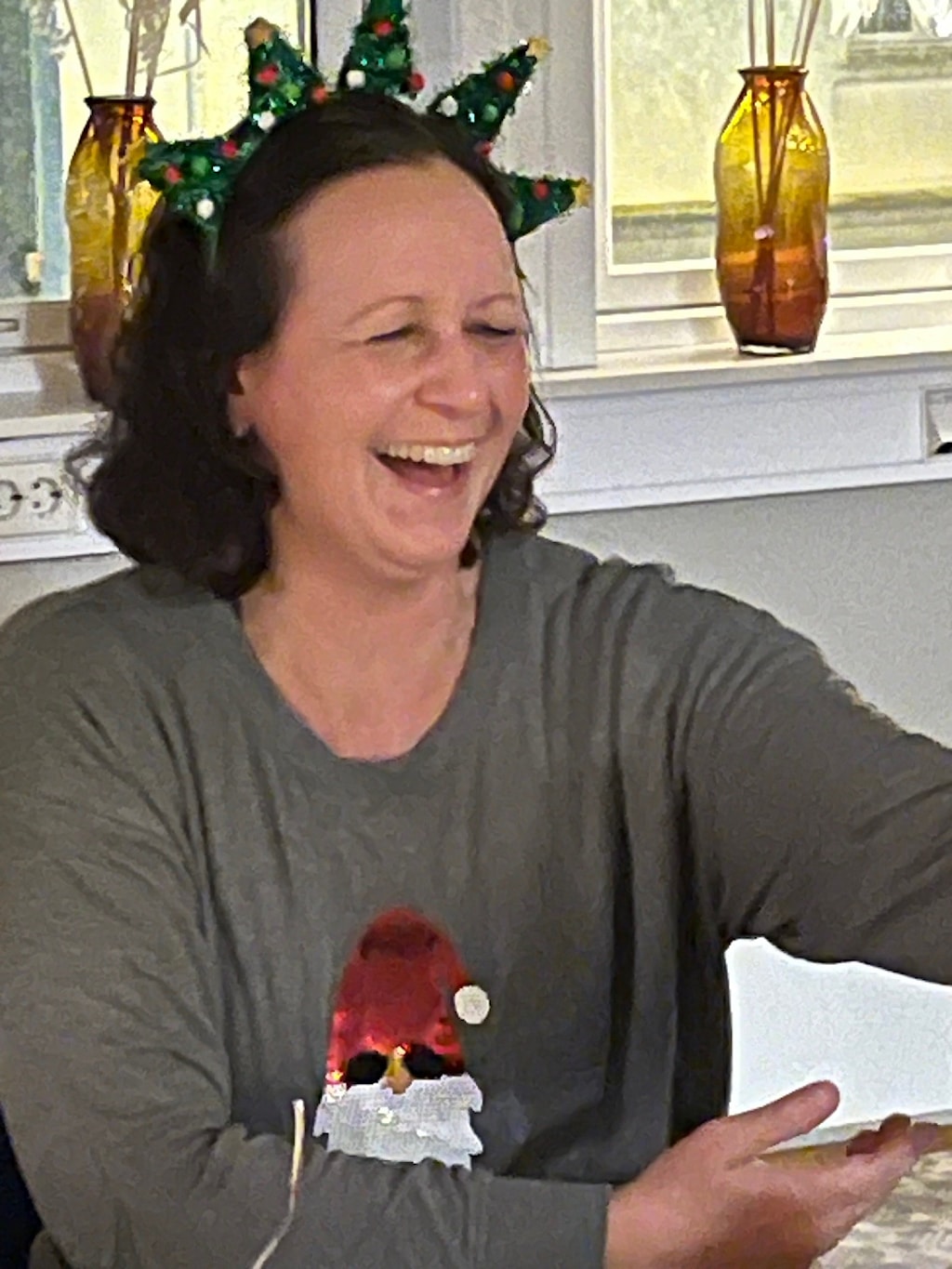 Så med julepyntet lokale - pepperkaker og gløgg og grøt på bordet - og digital peisild på skjermen lå alt til rette for en hyggelig førjulskveld.