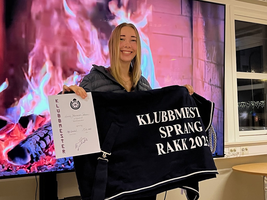 Et annet og svært hyggelig punkt på agendaen på dette møtet er utdeling av dekken og diplom til årets klubbmestere. Dessverre måtte klubbmester i dressur 2025, Magdalena Sendrowicz, melde avbud men klubbmester i sprang 2025 var tilstede. Linnea Johannessen Pedersen fikk derved overrakt klubbmesterskapsdekken og diplom til applaus og gratulasjoner.